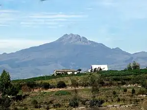 0°48′55″N 77°39′54″W / 0.8153°N 77.6649°W The Carchi River is a river of Ecuador. It rises on the slopes of Chiles Volcano, elevation 4,698 metres (15,413 ft), on the border of Ecuador and Colombia. The river flows eastward across the high plateau of El Angel.[1] The Carchi has a total course of about 45 kilometres (28 mi), forming the border between Colombia and Ecuador for about 20 kilometres (12 mi). It passes between the cities of Tulcan, Ecuador and Ipiales, Colombia and beneath the Rumichaca Bridge, the principal terrestrial link between Colombia and Ecuador.[2] Entering Colombia, the Carchi becomes known as the Guáitara River which is a tributary of the Patía River.