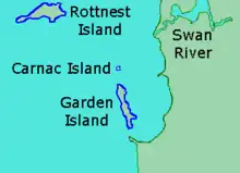 {{cite web}}: CS1 maint: multiple names: authors list (link) - ↑ Seubert, Earle. "Carnac Island - a history". Woodman Point Quarantine Station - The Hidden Community. Archived from the original on 14 October 2018. Retrieved 21 July 2017.