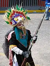 The carnival is led by a “General en Jefe de las Fuerzas o Ejercicios Carnavalesco” who is in charge of leading all four days of festivities. S/he is selected at a meeting which occurs just after the end of the current year's carnival.[3] Participants can prepare for up to six months in advance. The garments are still locally made, if not by the participants, then by local craftspeople.[1] Children are also part of the festivities, with their own costumes and small muskets.[5]