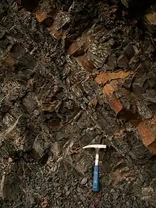 The zone is primarily composed of sedimentary rocks which were deposited from the Upper Jurassic up to the Cretaceous-Paleogene periods. The Flysch Belt is structural remnant of several basins, developed in front of the advancing ancestral Carpathians and later incorporated in the Tertiary Carpathian fold and thrust belt.[3] The former sedimentary basin of the Carpathian Flysch belt was a portion of the Alpine Tethys Ocean. The present rocks are not in their former position because they were detached from their basement during the closure and subduction of basins and pushed as nappe pile, forming the Carpathian accretionary wedge. The fold axial planes have generally north vergence, north-western in the western sector, northern in the central sector and north-eastern to eastern in the eastern sector. Only the nappes of the South Carpathians have eastern to south-eastern vergence.