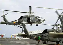On 19 October 2004, the newly re-designated Carrier Strike Group Nine departed Naval Base San Diego, California, for its 2004–2005 deployment under the command of Rear Admiral William D. Crowder.[1] During its 2004–2005 deployment, Carrier Strike Group Nine executed 4400 fix-winged sorties and completed 4455 flight deck landings (traps) for a total of 7588 flight hours. Also, the group executed 1518 rotary-wing sorties for a total of 4401 flight hours, including flying 1737 humanitarian relief missions in support of Operation Unified Assistance between 26 December 2004 and 3 February 2005.[1][2] Also, helicopter squadron HSL-47 (pictured) was the first LAMPS helicopter squadron deployed in its entirety on board an aircraft carrier, with the squadron providing LAMPS detachments to the other ships within the strike group. During this 2004–2005 deployment, HSL-47 detachments operated from the cruiser Cape St. George and the destroyer Shoup.[3]