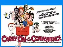 Carry On at Your Convenience is a 1971 British comedy film, the 22nd release in the series of 31 Carry On films (1958–1992), and was the first box office failure of the series. This failure has been attributed to the film's attempt at exploring the political themes of the trade union movement, crucially portraying the union activists as idle, pedantic buffoons which, apparently, alienated the traditional working-class audience of the series. The film, known as Carry On Round the Bend outside the United Kingdom, did not return full production costs until 1976 after several international and television sales.[2] The film features regulars Sid James, Kenneth Williams, Charles Hawtrey, Joan Sims, Hattie Jacques and Bernard Bresslaw. It features Kenneth Cope in the first of his two Carry On appearances. The film was followed by Carry On Matron in 1972.