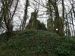The 1917 report also stated that the remains of a motte and bailey castle were easily traceable and became known as the old castle. A much more recent (sometime after 1990) visit by the Dyfed Archaeological Trust could find no trace of the older castle.[4] The Archaeological Trust has yet to visit Old Castle. If you do, the old motte can be seen as stated in the 1917 report.