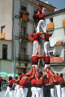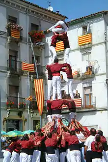 The best human towers structures ever built by the Castellers de Sarrià before its breakup in 2005 were the pillar of 5 (only assembled) and the 2 by 6.