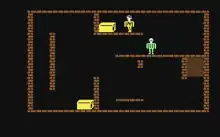 Warner implemented procedural level generation to the game, which took 35 to 60 seconds to complete before the gameplay of the original Apple version started; as a result, the game produced a new set of 60 rooms, the arrangement of which was nearly always different.[5] He designed the game's architecture using three programs, each of which was on separate floppy disks and later integrated into a single floppy disk. The first one initialized the graphics and shuffled 64 interchangeable floor plans. The second disk governed the behavior of the castle's guards, while the third disk handled the player character's behavior. According to Warner, a lot of work went into synchronizing the programs, and he was satisfied with the result.[5] For the soundtrack, he implemented his own voice for the German guards, using Apple II software called The Voice (also published by Muse Software).[10] He used German phrases such as Achtung, Schweinhund, Halt, and five other German phrases.[5]