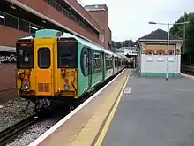 The civil parish of Caterham Valley has the more developed shopping area presenting the main town centre for the whole community and has a population of 7,581.[40] The parish church of St. John the Evangelist was consecrated in 1882. The railway station is a terminus in the central, dry valley at the heart of this very large neighbourhood. Traffic to and from the London and Croydon to the north heading towards the M25 motorway is routed around the town on the A22 over the Caterham Bypass, opened in 1939 as one of the earliest such roads in the country. Caterham School is a large independent co-educational day and boarding school situated along the sides of the Harestone Valley. North Downs Hospital is small private establishment on the outskirts of the town run by the Ramsay Health Care UK.[41] Part of Caterham Valley Business Community is represented by a business improvement district, which is publicly known as Caterham Valley For You.[42] Caterham Police Station, operated by Surrey Police is located in the middle of the valley; the local St John Ambulance unit shares the building.