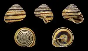 - ↑ Neiber, M.T.; Hausdorf, B. (2015). "Molecular phylogeny reveals the polyphyly of the snail genus Cepaea (Gastropoda: Helicidae)". Molecular Phylogenetics and Evolution. 93: 143–149. doi:10.1016/j.ympev.2015.07.022. PMID 26256642.