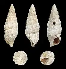 Cerithium rupestre Risso, 1826 ![]() Fossil of the same species from the Pliocene | |