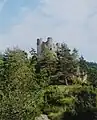 Today, the edifice is maintained as a ruin and has been listed, along with the chapel, since 1927 as a monument historique by the French Ministry of Culture.[1] According to the Michelin Green Guide to the Auvergne and Rhône Valley, which rates it as two stars ("worth a detour"), "There can scarcely be another beauty spot in the Auvergne as romantic as the site of this castle."[4]