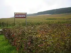 Chambertin is an Appellation d'origine contrôlée (AOC) and Grand Cru vineyard for red wine in the Côte de Nuits subregion of Burgundy, with Pinot noir as the main grape variety. Chambertin is located within the commune of Gevrey-Chambertin, and it is situated approximately in the centre of a group of nine Grand Cru vineyards all having "Chambertin" as part of their name.[1] The other eight vineyards, which all are separate AOCs, have hyphenated names where Chambertin appears with a prefix, such as Chapelle-Chambertin. Chambertin itself is situated above (to the west of) the Route des Grands Crus. It borders on Chambertin-Clos de Bèze in the north, Griotte-Chambertin and Charmes-Chambertin in the east (across the road) and the Latricières-Chambertin in the south.[2] The AOC was created in 1937.
