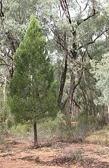 - ↑ Cohn, J.S., Lunt, I.D., Ross, K.A., Bradstock, R.A., Koen, T. 2012. Interactions between dense Callitris and Eucaluptus and Callitris canopy trees in semiarid woodlands. Australian Journal of Botany. 60: 556.