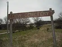 The shooting of Dow triggered a series of confrontations that later led to the Sacking of Lawrence, the Wakarusa War, the Pottawatomie massacre, and the Battle of Black Jack. Coleman was one of the men taken captive during the Battle of Black Jack in 1856 and was linked to another killing of a Free-Stater that year.[4] The Dow Cemetery was used until 1873, when Stony Point Cemetery was founded, and is estimated to contain 75 burials. The cemetery is nearly lost now but a sign erected by the local Santa Fe Trail Historical Society marks the location.