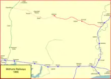 The LSWR (former Petersfield Railway) and the LBSCR (former Mid-Sussex and Midhurst Junction Railway) had two separate stations in Midhurst, not far apart. Colonel Yolland had commented adversely on the arrangement during his inspection of the Petersfield line on 18 August 1864.[12] A goods-only connecting line, 11 chains in length, was made and opened on 17 December 1866.[22][23]