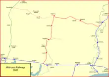 At the end of the 1850s a number of attempts were made to gain support for a Midhurst connection from Chichester, but these were unsuccessful. However in 1863 three separate, competing bills for a Chichester and Midhurst Railway were promoted, and went to Parliament for authorisation in the 1864 session.[24] One of them was proposed by Lord Henry Gordon Lennox and William Townley Mitford, the members of Parliament for Chichester and Midhurst respectively. This was the scheme that was passed, incorporated by Act of 23 June 1864; capital was £190,000 and the length of the line was 11+3⁄4 miles. It was to run from a junction a mile west of Chichester and run to the Petersfield Railway's station at Midhurst, together with a south-to-west spur there forming a triangular junction. There was required to be a station at Lavant at which all trains had to stop.[24]