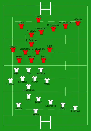 | Try: Sánchez 9' c González (2) 16' c, 68' c Creevy 23' c Bogado 46' c Isgro 64' c Ruiz 77' c S. Carreras 79' c Con: Sánchez (6/6) 10', 17', 24', 47', 65', 69' S. Carreras (2/2) 78', 80+1' Pen: Sánchez (1/1) 13' | Report | Try: Dussaillant 73' m |