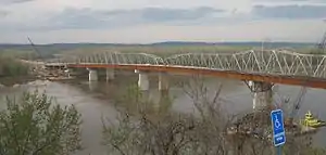 ![]() Hermann Bridge with the new Christopher Bond bridge construction in the foreground from the southwest bank in March 2007 | |