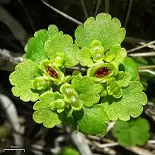 Chrysosplenium iowense is a species of flowering plant in the saxifrage family known by the common name Iowa golden-saxifrage. It is native to North America, where it is "primarily a Canadian species", occurring from the northern Northwest Territories south to British Columbia and east to Manitoba.[1] There are also disjunct,[1] relictual[2] occurrences within the United States, in the Driftless Area of Minnesota and Iowa.[3]