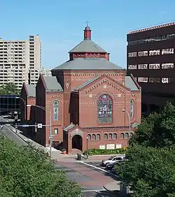 Bragdon's ornament appeared in the Rochester Chamber of Commerce (1915–17), as well as in the design of magazines, posters, and books. It spread throughout the region through its use in a series of Festivals of Song and Light that Bragdon staged with community music reformers from 1915 to 1918 in Rochester, Buffalo, Syracuse, and New York. These nocturnal community chorus festivals incorporated ornamental lamps and decorations into massive public events that drew tens of thousands of spectator-participants.[3] Through its role in both civic architecture and print media, projective ornament began to integrate these distinct realms into a single public sphere visually unified by geometric pattern.[4]