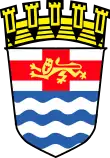 | Blazon | Barry wavy of six azure and argent, on a Chief of the last the cross of St George charged with a lion of England |