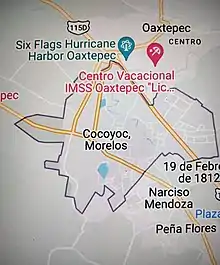 Cocoyoc is a city in the north-central part of the Mexican state of Morelos. It is located at 18°53′N 99°04′W. The city lies within the municipality of Yautepec. Cocoyoc reported 10,178 inhabitants in the 2020 census and is the third-largest community in Yautepec.[1]