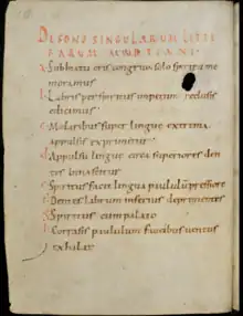 | Versus | 23-50 | Processional hymns in metric diction, mainly used during specific celebrations. A portion of the versus composed at the abbey is attributed to Ratpert | |