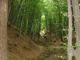 These uplands are interlaced by deep, flat valleys, ravines, and landslide-scoured depressions separated by sharp ridges. Steep, forest-clad slopes account for much of the codrii.