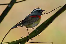 The collared bush robin or Johnstone's robin[3] (Tarsiger johnstoniae) is a species of bird in the family Muscicapidae. It is endemic to Taiwan, living in montane and subalpine forests. The International Union for Conservation of Nature (IUCN) has assessed it as a least-concern species.