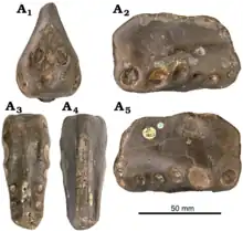 | Holotype jaw fragment of C. clavirostris in multiple views | |
