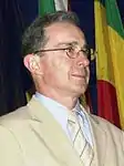 Presidential elections were held in Colombia on 26 May 2002.[1] Álvaro Uribe, the candidate of the recently created Colombia First movement, was elected, receiving 53% of the vote by the first round. Uribe took office on 7 August.[2]