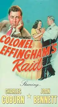 Colonel Effingham's Raid (UK title: Man of the Hour) is a 1946 American comedy film directed by Irving Pichel. It is also known as Berry Fleming's Colonel Effingham's Raid, Everything's Peaches Down in Georgia and Rebel Yell. The screenplay was written by Kathryn Scola, based on a 1943 novel by Berry Fleming. The music score is by Cyril J. Mockridge. The film stars Charles Coburn, Joan Bennett and William Eythe. The plot involves a retired career Army colonel who returns to his hometown, starts writing a column in a local newspaper and takes on the corrupt local politicians to not replace the historic county courthouse.