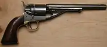 The Colt Model 1861 Navy cap & ball .36-caliber revolver was a six-shot, single-action percussion weapon produced by Colt's Manufacturing Company from 1861 until 1873. It incorporated the "creeping" or ratchet loading lever and round barrel of the .44-caliber Army Model of 1860 but had a barrel one half inch shorter, at 7.5 inches. Total production was 38,000 revolvers.[1][2]