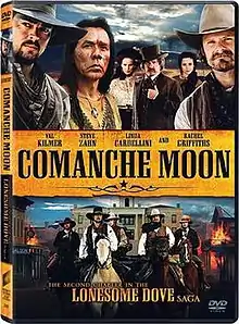 Comanche Moon is a 2008 American Western television miniseries, an adaptation of the 1997 novel of the same name. Woodrow Call and Gus McCrae are in their middle years, serving as Texas Rangers. In terms of the Lonesome Dove series' storyline, this account serves as a prequel to the Lonesome Dove miniseries, and a sequel to Dead Man's Walk. It first aired on CBS beginning Sunday, January 13, and continuing Tuesday, January 15, and Wednesday, January 16, 2008.
