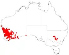 The species occurs in the states of New South Wales and Western Australia.[3][5]