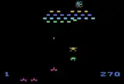 Communist Mutants from Space is a fixed shooter video game programmed by Stephen H. Landrum for the Atari 2600 with the Starpath Supercharger cassette accessory. It was published in 1982 by Starpath (formerly Arcadia).[2] The game is similar to Galaxian,[3] adding a variety of gameplay-changing options.
