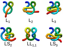 - the Ln class (simple lasso), where one tail pierces the surface n times;