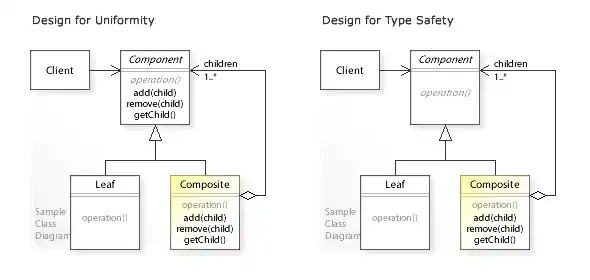 As it is described in Design Patterns, the pattern also involves including the child-manipulation methods in the main Component interface, not just the Composite subclass. More recent descriptions sometimes omit these methods.[7]