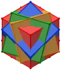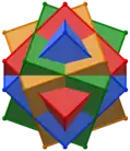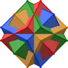 The compound of four cubes or Bakos compound[1] is a face-transitive polyhedron compound of four cubes with octahedral symmetry. It is the dual of the compound of four octahedra. Its surface area is 687/77 square lengths of the edge.[2]