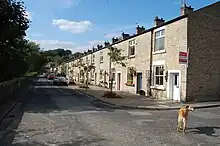 In 1804, the Andrew family established a water-driven calico printing business downstream from the present mill site.[4] In 1821, Thomas Andrew died. The Manchester Guardian of 22 September recorded "On Friday morning the 14th inst. suddenly of angina pectoris, under which he had laboured for some years, Thomas Andrew, Esq, of Harpurhey aged 68. He has left a widow and numerous family to lament his loss." His son George Andrew I reorganised the business. He built a water-powered cotton mill and a reservoir to power the wheels. He had a steam engine to provide backup power. The earliest workers' cottages had been built in the southern side of the bridge in 1806; in 1823, cottages were built along Market Street on the north side and this became the heart of the village. With further mills, further houses were added to the north of the village and, by 1839, the village was almost complete.[4]