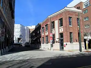 Carpenter & Company, which already owned the remainder of the block, bought the Conductor's Building plus Bennett Alley and an adjacent parcel containing an active MBTA transformer for $4 million in 2012.[8] The MBTA retains a permanent easement to use Bennett Alley for buses. In February 2014, the company started construction on the $65 million development, which included an office building built over the MBTA transformer plus a renovation of the Conductor's Building, intended to turn it into "the longest bar in America".[4][9]