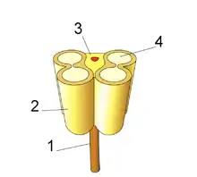 In botany, the connective is the portion of sterile tissue of the anther between and interconnecting the two thecae,[1][2] which forms a body with them and holds them together. It is usually underdeveloped and it is subject to great diversity of form,[3] causing the thecae to protrude prominently. In some primitive angiosperms, the entire stamen may be more or less foliaceous, and the connective may be highly developed, causing the thecae to be widely separated. It appears to be analogous to the midrib of a leaf, and is only absent when an anther is strictly one-celled; that is to say, when the whole of the interior of the end of the stamen is converted into pollen.[3] In some cases, the tissue has appendages of various shapes that are of structural importance (e.g., in the Melastomataceae or Prostantheroideae).