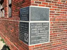 In 1919, Milton C. Garber, then mayor of Enid, and his commissioner aides, G. W. Pancoast and Jason W. Butts, proposed a bond issue for the construction of a building to memorialize the efforts of Garfield County soldiers in World War I.[3] Sealed bids were accepted until September 1, 1919 on bonds of $250,000 for the construction of the convention hall.[4][5] The building was constructed at a cost of $500,000 with an original capacity of 5,000.[3] It was designed by the architectural firm Layton, Smith and Forsyth and constructed by Bass and Frankenfield Builders. It served as a meeting place for the Enid Chamber of Commerce.[3] The hall served as a venue for stage productions including plays such as Hitchy-Koo and Al G. Field minstrel shows[3] and for musicians such as John Philip Sousa, Ernestine Schumann-Heink, Bob Wills, and Fred Waring.[6] President George Bush spoke at the venue while campaigning in 1992.