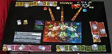 Cooperative board games are board games in which players work together to achieve a common goal rather than competing against each other.[1] Either the players win the game by reaching a pre-determined objective, or all players lose the game, often by not reaching the objective before a certain event ends the game.[2]