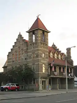 Cortland Fire Headquarters is a historic fire station located at Cortland in Cortland County, New York. It is a three-story, predominantly rectangular structure, consisting of stepped gables, square bell tower, yellow faced brick, and tiled roof, built in 1914. The first floor houses fire apparatus, the second serves as quarters for firefighters, and the third is a meeting hall and training area, as well as the home for the special operations division.[2]