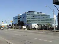 Corus Quay, originally named First Waterfront Place, is an eight-storey commercial office tower located on a 2.5-acre (1.0 ha) waterfront site in Toronto, Ontario, Canada. The CA$160 million building is the first major development planned for the East Bayfront district, and completed construction at the foot of Jarvis Street or Jarvis Street Slip. Corus Quay is Corus Entertainment's new Toronto headquarters, consolidating its 10 locations and 1,200 employees into one site.[2] The building was designed by Diamond Schmitt Architects with interiors completed by Quadrangle Architects.[3] The building was being developed by the Toronto Economic Development Corporation (TEDCO), a city agency. Funding for the project came from TEDCO's equity, city loans and a CA$12.5 million contribution from the city contributed via Waterfront Toronto.