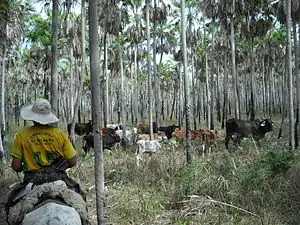 The country's breeding stock was primarily Spanish criollo, although over the years considerable crossbreeding with English breeds and zebu cattle from Brazil had taken place.[8] Although cattle were numerous in Paraguay, the country lacked a sufficient number of pure-bred breeding cattle. The livestock sector also suffered from a low calving percentage, a high mortality rate, and a long fattening period for steers. Artificial insemination was increasingly common. To a certain extent, cattle raising reflected the disparities in agriculture in general. There were numerous farmers who owned only a few head of relatively unproductive cattle that were slaughtered for the local market under relatively poor sanitary conditions. By contrast, extremely large cattle ranches typically were owned by expatriates and butchered more productive animals for both national and international markets.