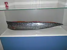 The crested oarfish (Lophotus lacepede) is a species of crestfish in the family Lophotidae. It is an oceanodromous fish ranging from waters 0–92 meters deep, but may get stranded in shallow waters.[2][3][4][5]
