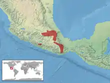 Campbell and Lamar (2004)[4] describe this species as being found across the Mexican Plateau in the temperate regions of moderate to high elevations. They estimate the vertical distribution to be from about 1,490 metres (4,890 ft) above sea level to a little over 3,000 m (9,800 ft) altitude.[4]