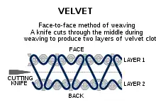 - ↑ One or more of the preceding sentences incorporates text from a publication now in the public domain: Chisholm, Hugh, ed. (1911). "Velvet". Encyclopædia Britannica. Vol. 27 (11th ed.). Cambridge University Press. pp. 979–980.