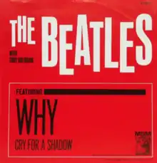 "Cry for a Shadow"'s original title was "Beatle Bop".[2] It was intended to be released as the B-side of "Why", another Sheridan song with the Beatles, but the record company Polydor chose to release another song instead. This instrumental is the Beatles' first recording of an original song commercially released when, in January 1962, it was included on Tony Sheridan's French EP entitled "Mister Twist".[3] In mid-1963, as the Beatles were gaining popularity, Polydor decided to rerelease this EP in Germany as "Tony Sheridan With The Beatles",[4] and in early 1964, "Cry for a Shadow" was released in Britain, Germany and Australia (where it reached number 32)[5] as a single with "Why" changed to the B-side,[6] while in North America, Sheridan's song was designated as the A-side.[7]