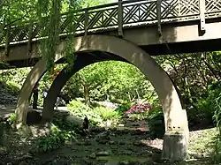 The garden, located between Southeast 28th Avenue and Woodstock Boulevard, covers 9.49 acres (3.84 ha) and is named for the numerous springs within the garden. Crystal Springs Garden features more than 2,500 rhododendrons, azaleas, and other plants in a setting of small lakes, paved and unpaved paths, fountain, and small waterfalls.[1]
